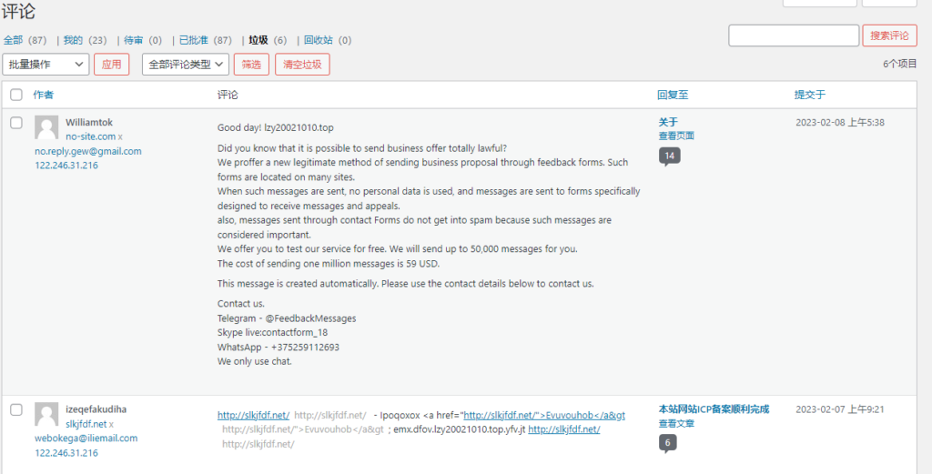 于是有了本文使用代码来过滤和阻止垃圾评论的方法。
